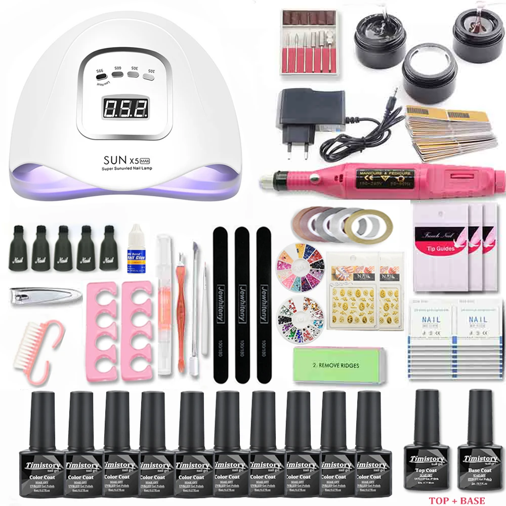 ORIGINAL Gel Nail Set with 80W UV LED Nail Lamp Optional 20/10 Color Gel Polish with Base Top Coat Extension