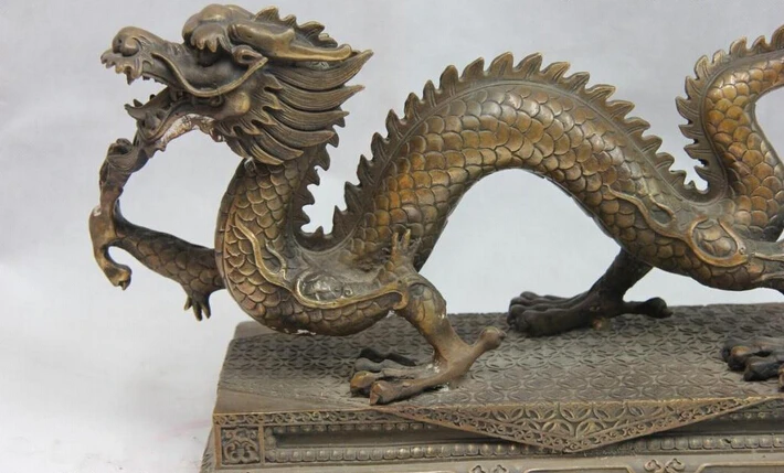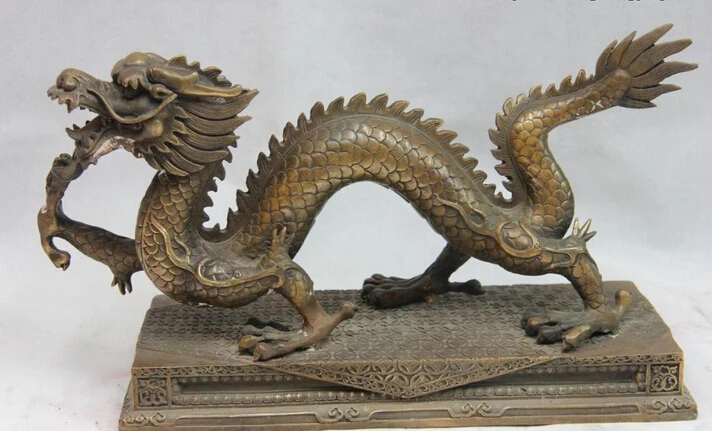 Best Collectible bronze S2305 China imperial family Copper Feng Shui Lucky auspicious Zodiac Fly Dragon