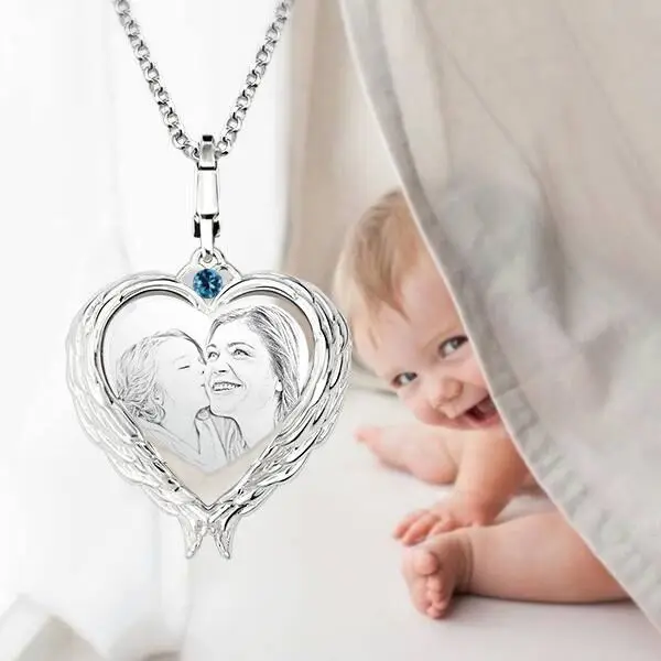 Amxiu Personalized Gift Custom 925 Silver Heart Pendant Necklace Engrave Family Photo Necklace For